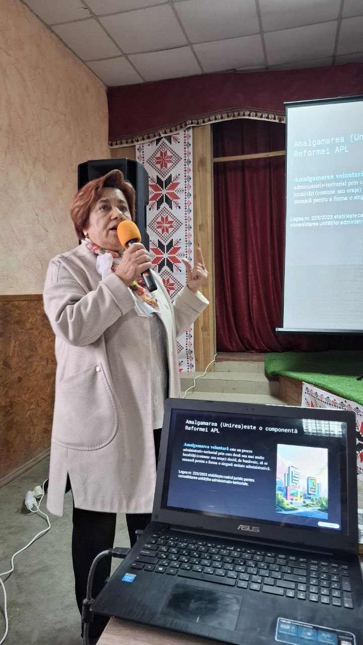 În cadrul ședinței, au fost prezentate aspectele generale ale procesului de amalgamare voluntară — un mecanism prin care două sau mai multe unități administrativ-teritoriale pot decide, în mod benevol, să formeze o singură comunitate administrativă, cu scopul de a consolida capacitatea administrativă și financiară și de a îmbunătăți serviciile publice oferite cetățenilor.